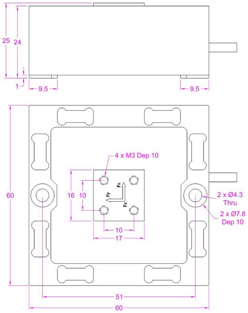 The F3U 3-axis load cell is a compact and high-precision multi-axis force sensor designed for accurate three-dimensional force measurement in both tension and compression along the X, Y, and Z axes. Available in 100N, 200N, 300N, and 500N rated capacities, this 3D load cell combines durability with precision—aluminum construction is used for the 100N and 200N models, while stainless steel is adopted for the 300N and 500N versions to ensure superior strength and stability under higher loads. Each axis of the sensor integrates a full Wheatstone bridge circuit to provide direct, stable mV/V output signals without the need for complex mathematical compensation. When combined with an external amplifier, it can conveniently deliver 0–5V, 0–10V, or 4–20mA analog outputs for versatile system integration. Engineered for robotics, industrial testing, and research applications, the F3U multi-axis load cell offers excellent repeatability and low cross-talk performance. Forsentek also provides fully customized triaxial load cell designs to meet specific requirements for precision force sensing in complex, multi-directional measurement environments.